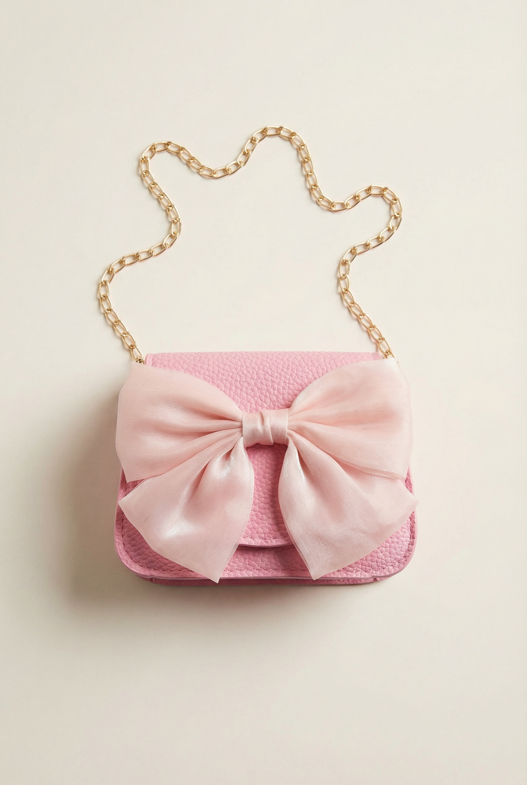 Elegante roze handtas voor meisjes met sierlijke strik en gouden ketting