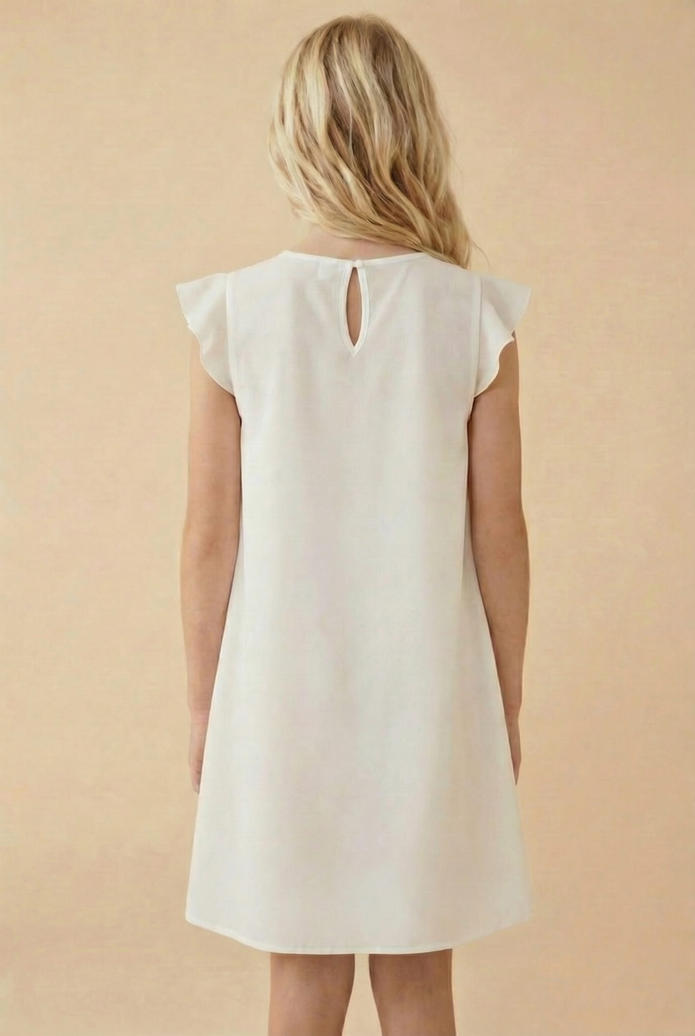 Mouwen met een volant geven de jurk een bijzondere charme.