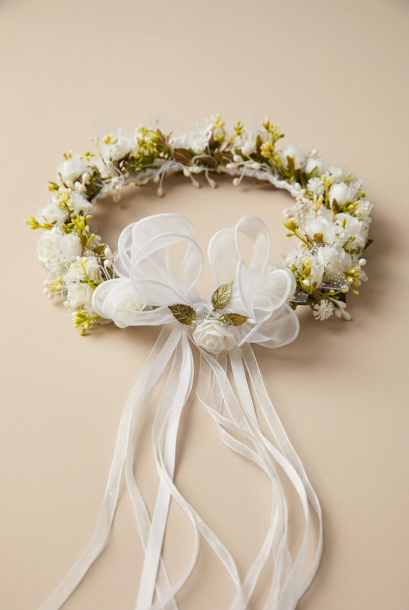 Deze unieke communie-haarkrans is de perfecte combinatie van elegantie en vakmanschap, ontworpen met speciale gelegenheden in gedachten, zoals de Eerste Heilige Communie. Elk element is met de hand gemaakt met uiterste precisie om een harmonieuze en verfijnde haaraccessoire te creëren voor meisjes die er op hun speciale dag stralend uit willen zien.