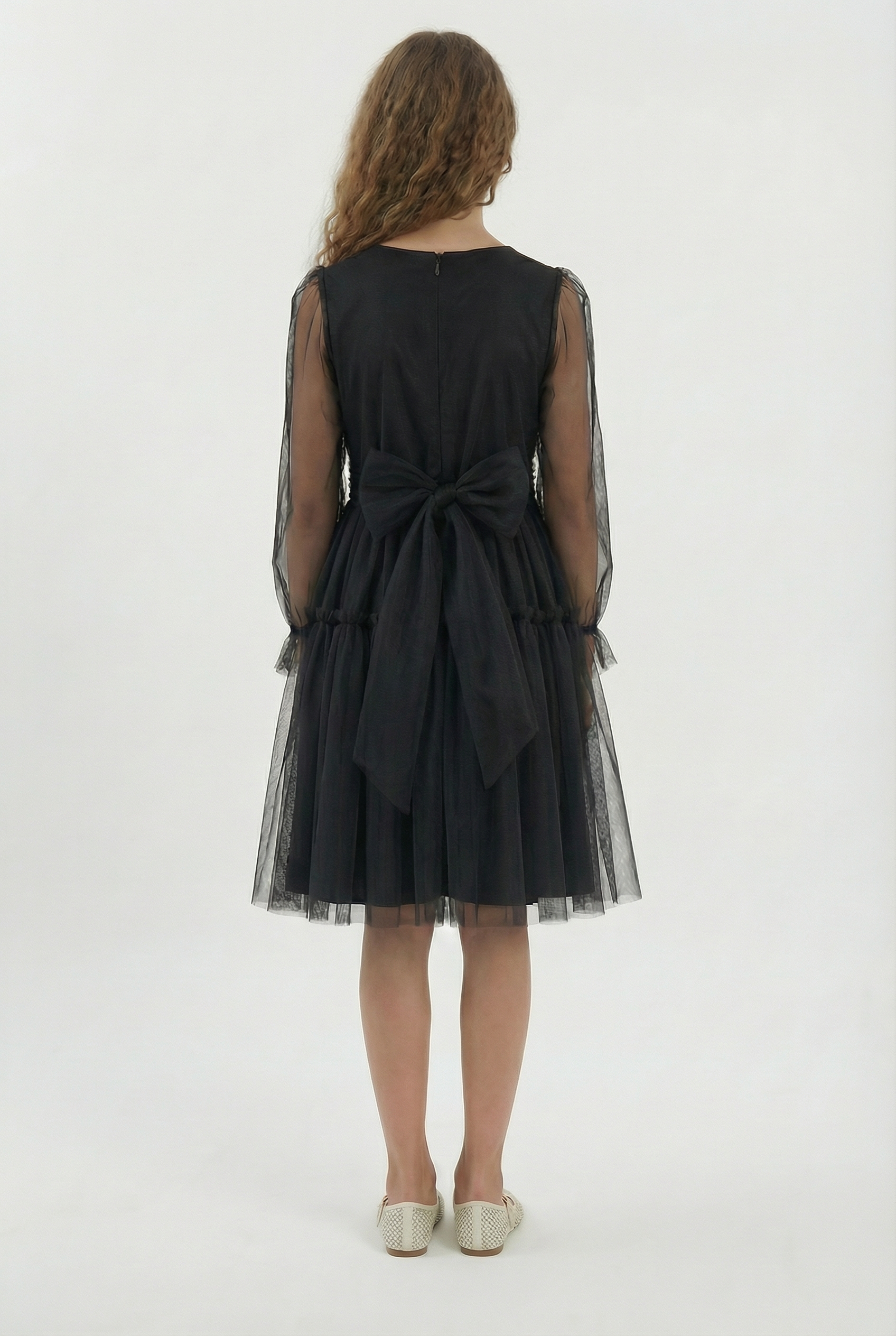 Holly – Betoverende Zwarte Tulejurk met Lange Mouwen