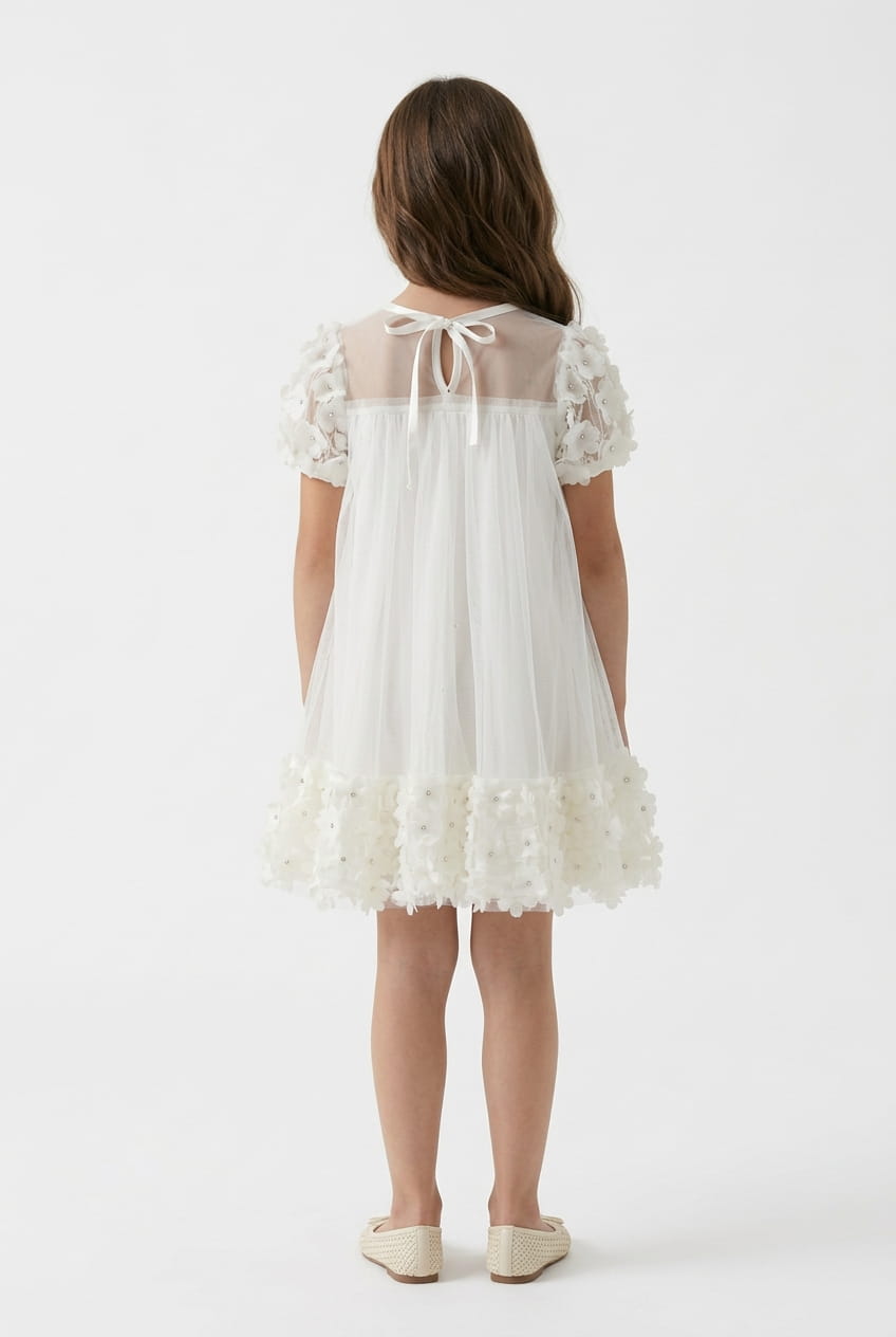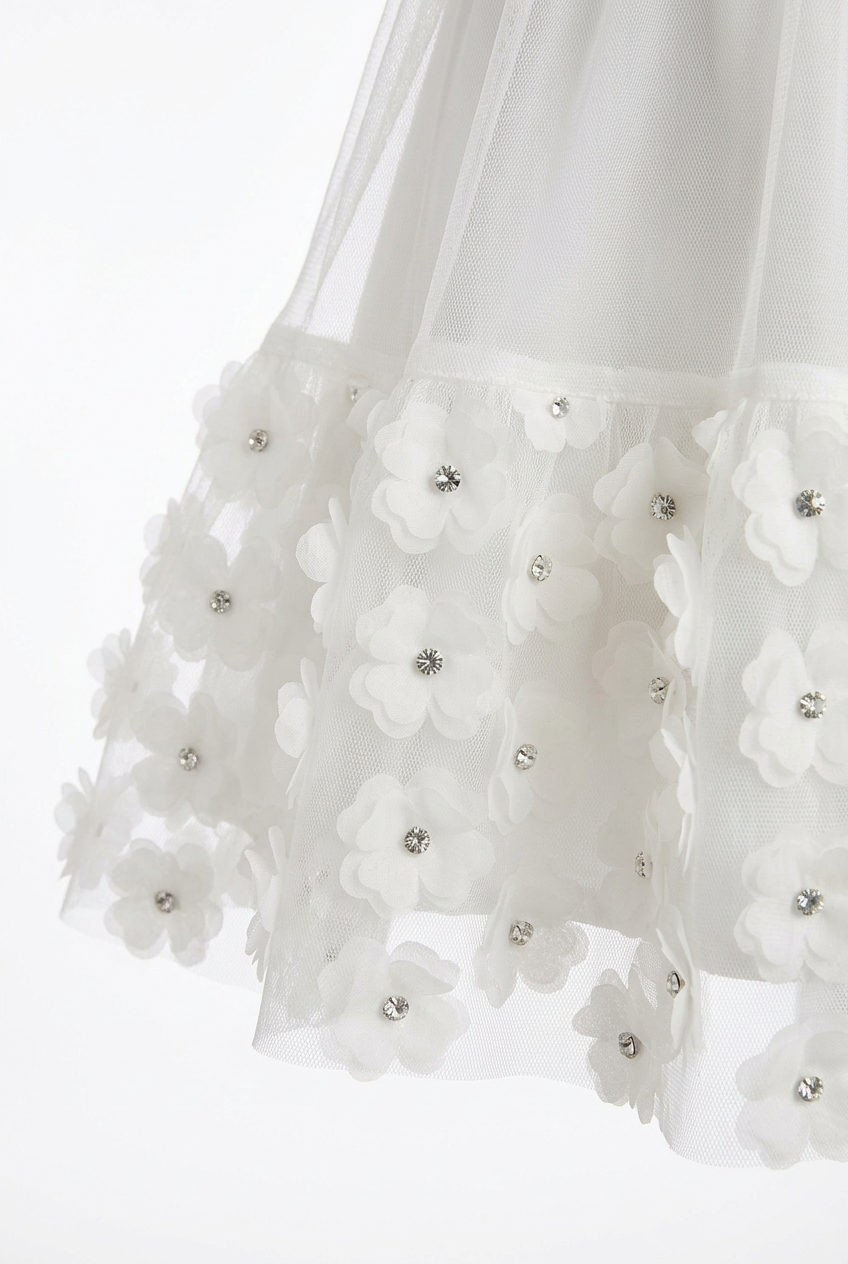 Meisjesjurk Romy crèmewit met 3D-bloemen en tule