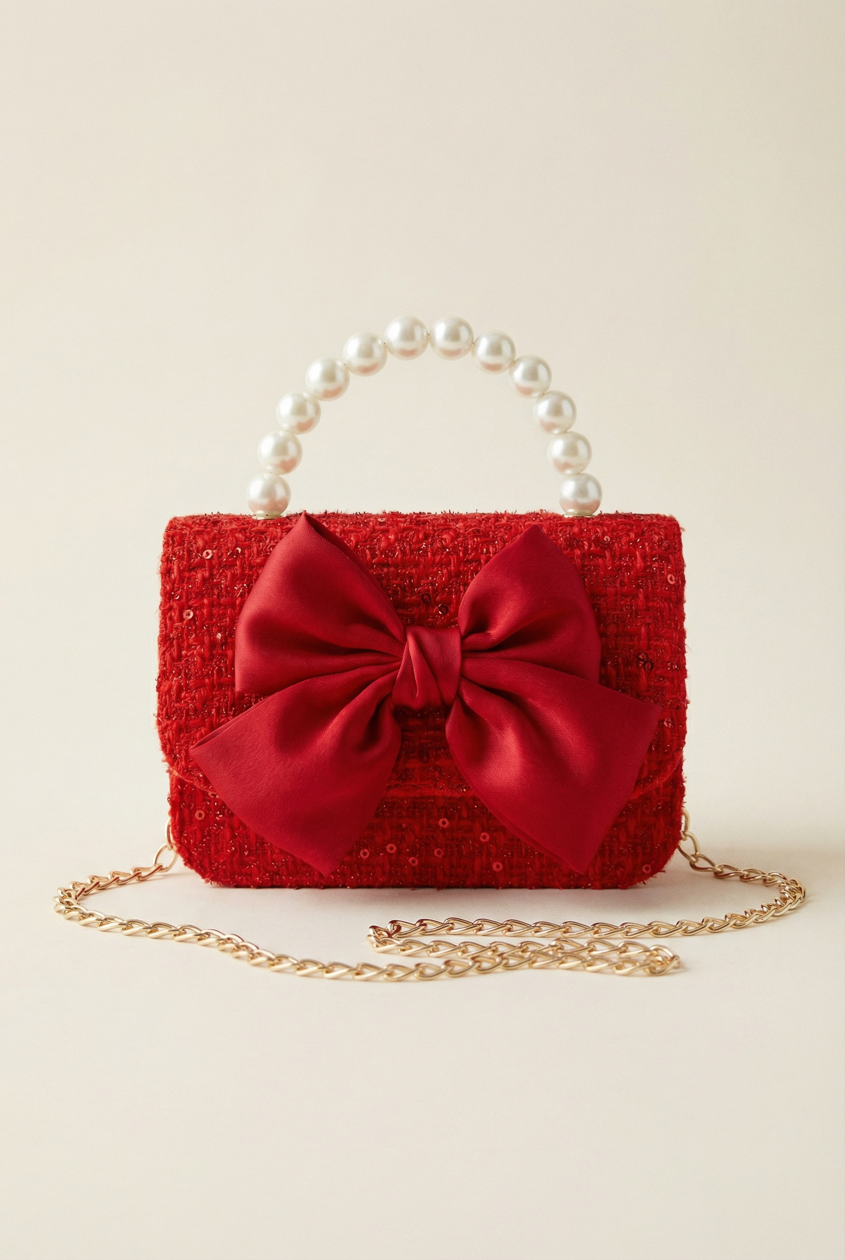 Rood Meisjes Handtasje met Strik en Parelhandvat